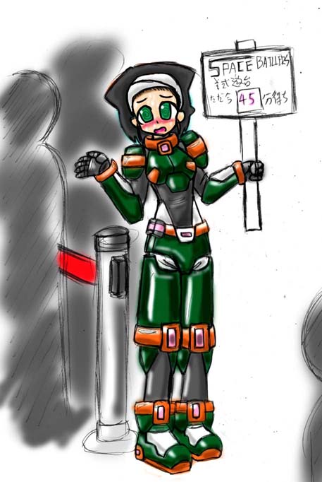 「くるみでーす!今回はゲームショーのコンパニオンのバイトに来てまーす。新作SFゲームだからロボットのキグルミだったんだけど、
