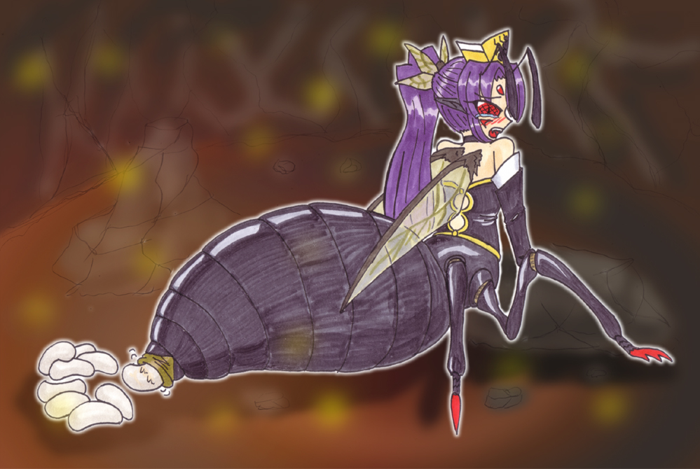 体の中で蠢く無数の卵の動きが活発化していく。同時に、それらを押し出すように、膨張した蟻の尾が根元から凹み、締まっていく。内部では肉壁が膨張し、ぬらりとした表面を滑らせるように卵を一気に押し出していく。内壁を卵が滑る感覚だけで、美影は膝ががくがくと震え、力が抜けてしまいそうだった。だが、此処で力を抜いたら、娘達の願いを叶えられない駄目母親となってしまう。女王として、それはあってはならないことであった。